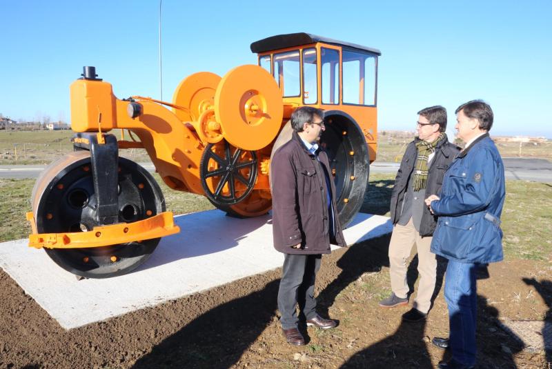 Durante su visita, el Presidente también ha podido conocer el nuevo elemento decorativo de la rotonda de acceso al Parque de Maquinara. Se trata de una apisonadora estática HMS de motor diesel tipo 40 con número de serie 342, fabricada por Instalaciones Industriales Bilbao en el año 1928. "La abuela", como así es conocida entre los empleados del Servicio de Infraestructura y Obras, fue adquirida de segunda mano por la Diputación en el año 1930 para acondicionar caminos y carreteras con firme de macadam. Consta de dos ruedas metálicas traseras y un rodillo delantero, movido por un motor diesel de un cilindro.